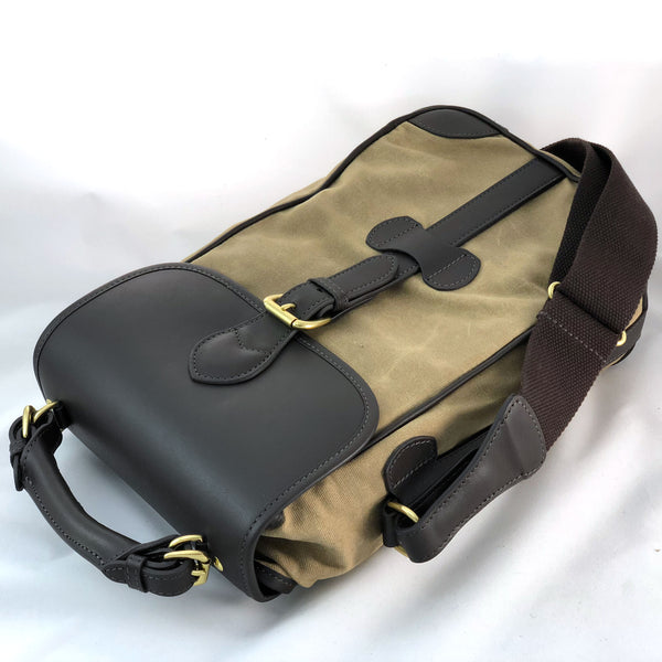 2 Bottle wine carrier tote made with wax cotton canvas with plenty of latigo leather and removable padded insert. It fits 2 of your standard 750 ml wine bottles and protects them with padding as well.