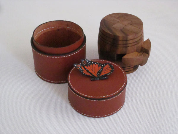 Small Cylinder Box with Puzzle Tan